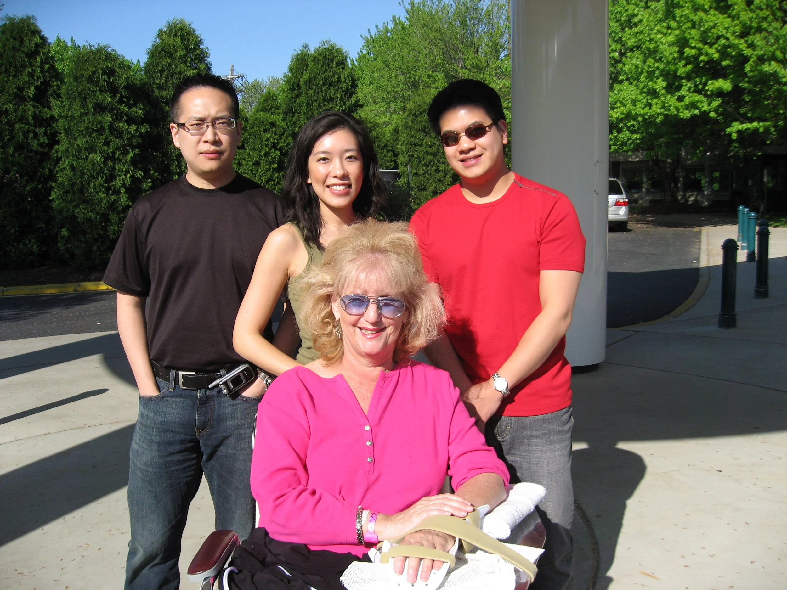 Jennifer, Jon and Jeff Law visiting with Mrs. Clarfield at the Rehab Center on Mother's Day